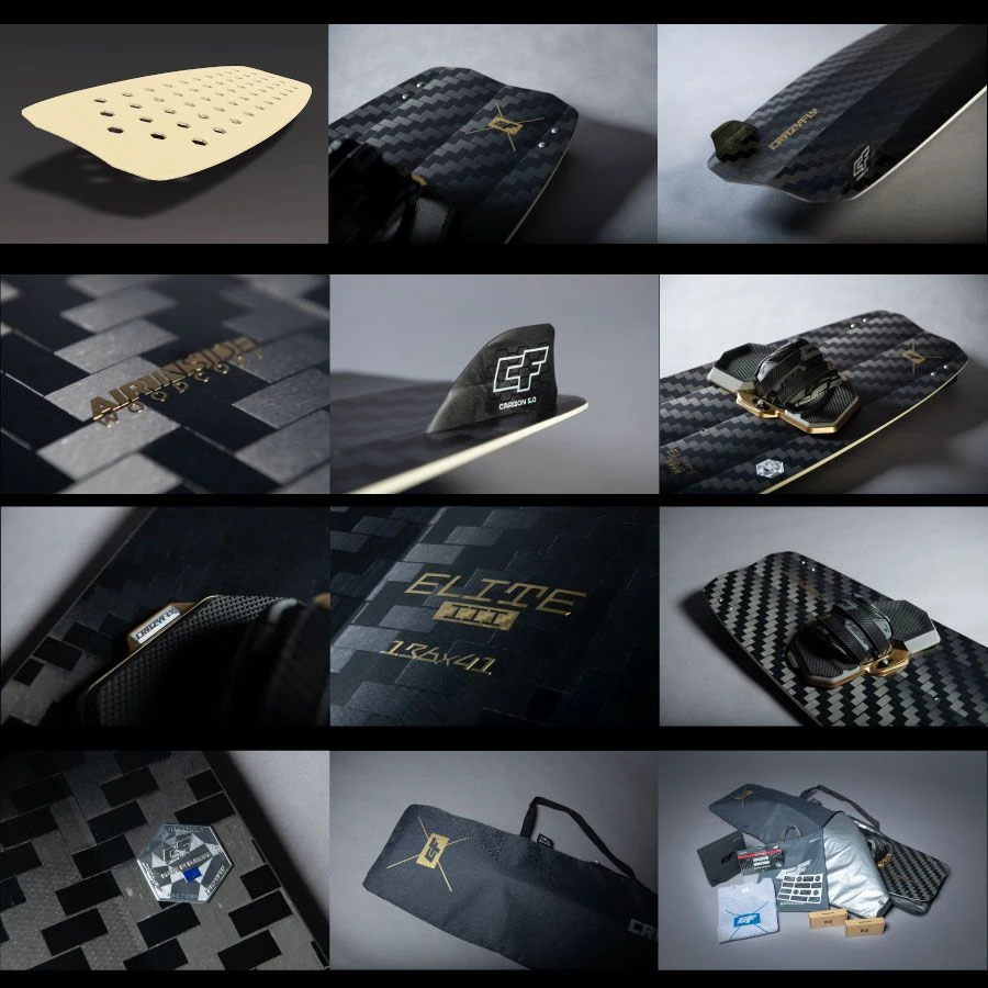Performance wise, the Elite III was designed as a high end freeride board. As with every carbon board, the Elite III has quite a lot of pop and dynamics, so the load’n’pop will not disappoint. Unlike other carbon boards, we believe the Elite III is the most flexible carbon board out there. It definitely is comfortable to ride. Due to its extremely light weight, it is very simple to maneuver and thanks to the double concave bottom shape, it handles chop extremely well and cuts upwind with ease.